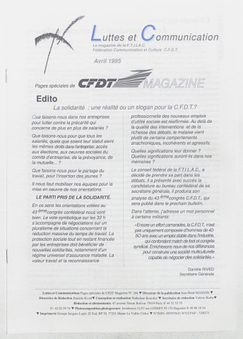 Journal mensuel de la FTIAAC puis FTILAC. À partir de 1995, il prend la forme de pages spéciales encartées dans CFDT Magazine et devient trimestriel. Disparaît en 1999 au profit du Magazine Médiations.